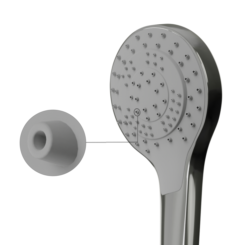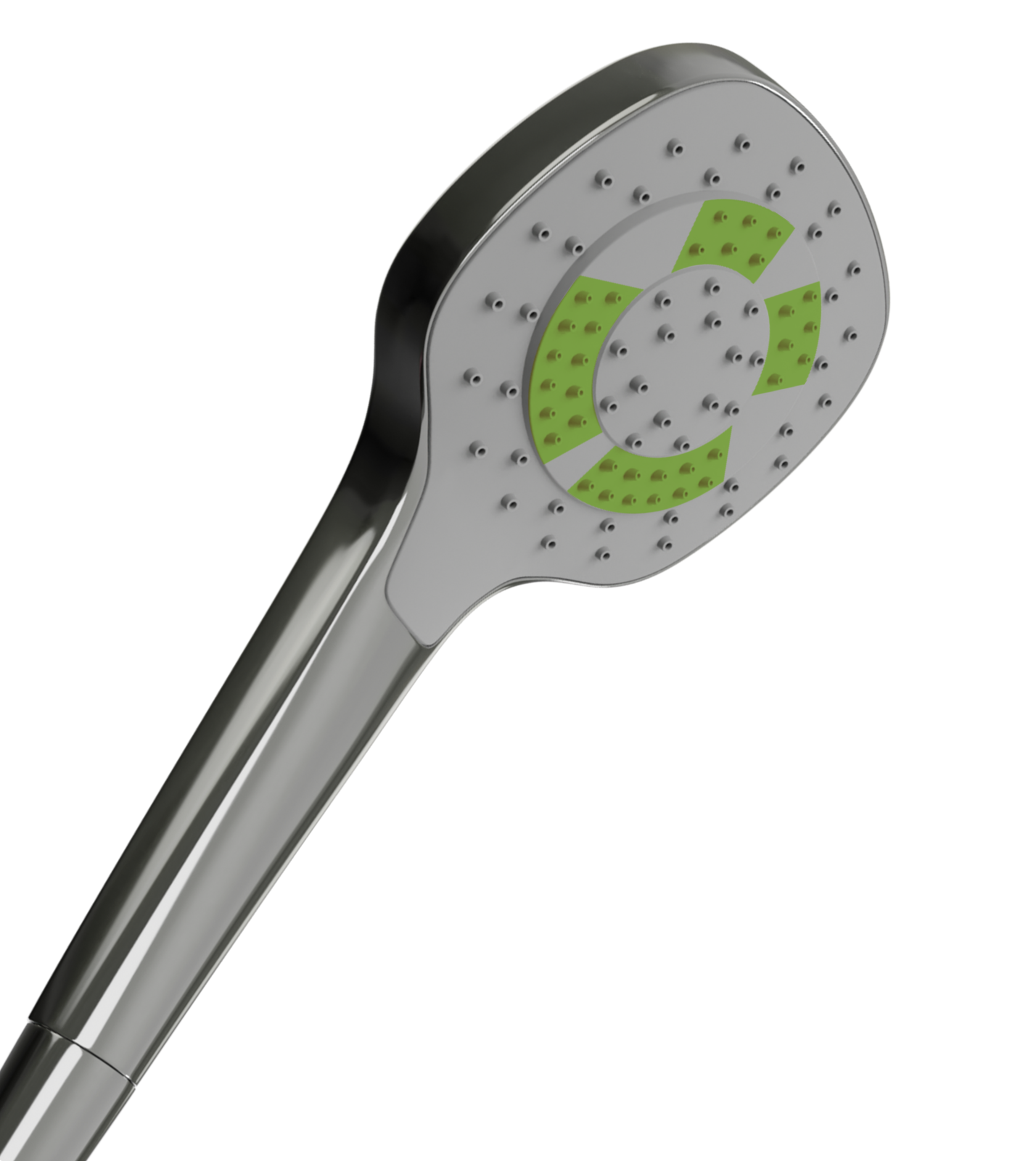 На каждой 3D-модели мы отметили зоны, которые нужно массировать струями воды из душевой лейки. Так мы получили карту универсальных массажных зон, подходящих для всех типов лица.